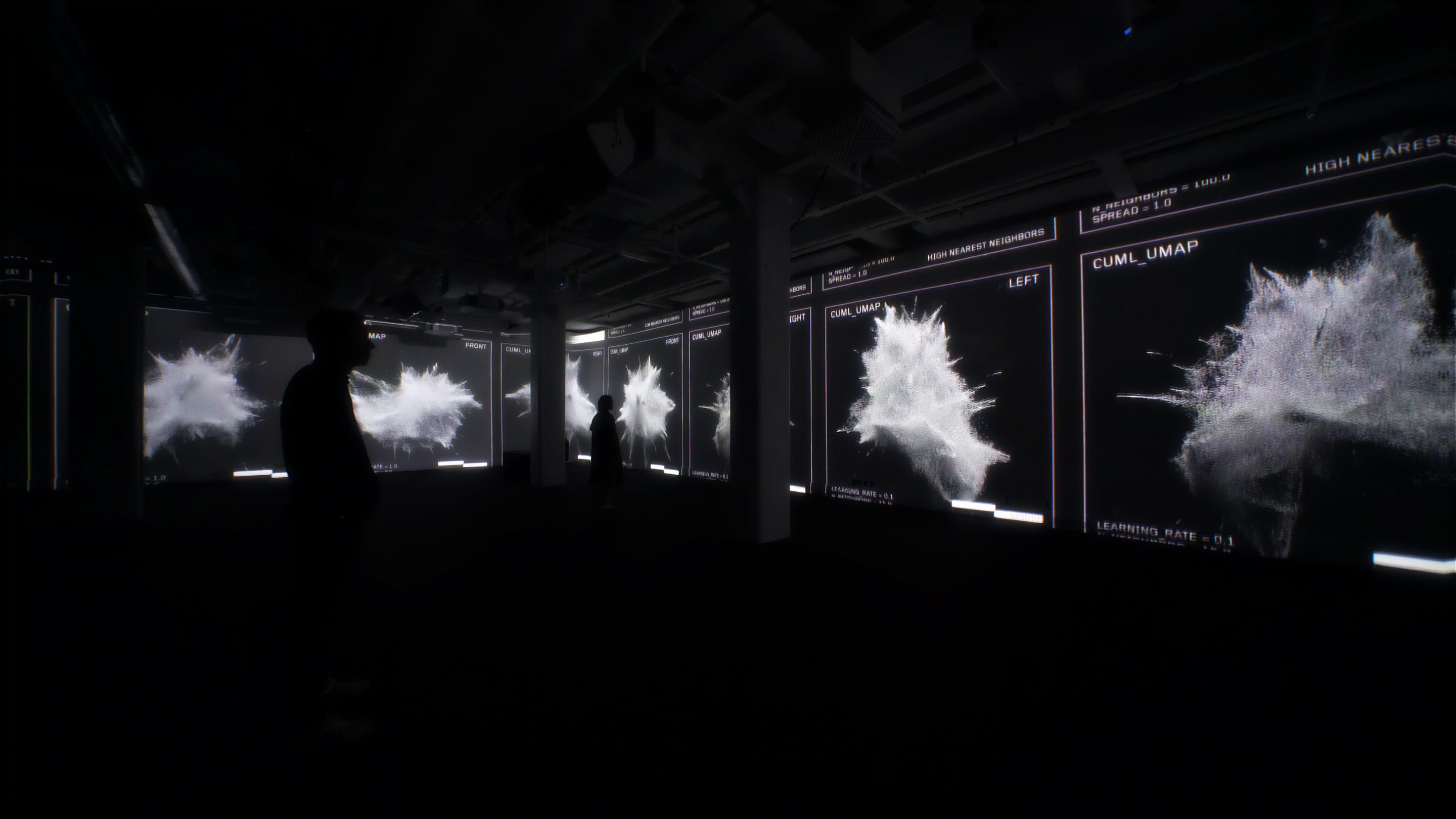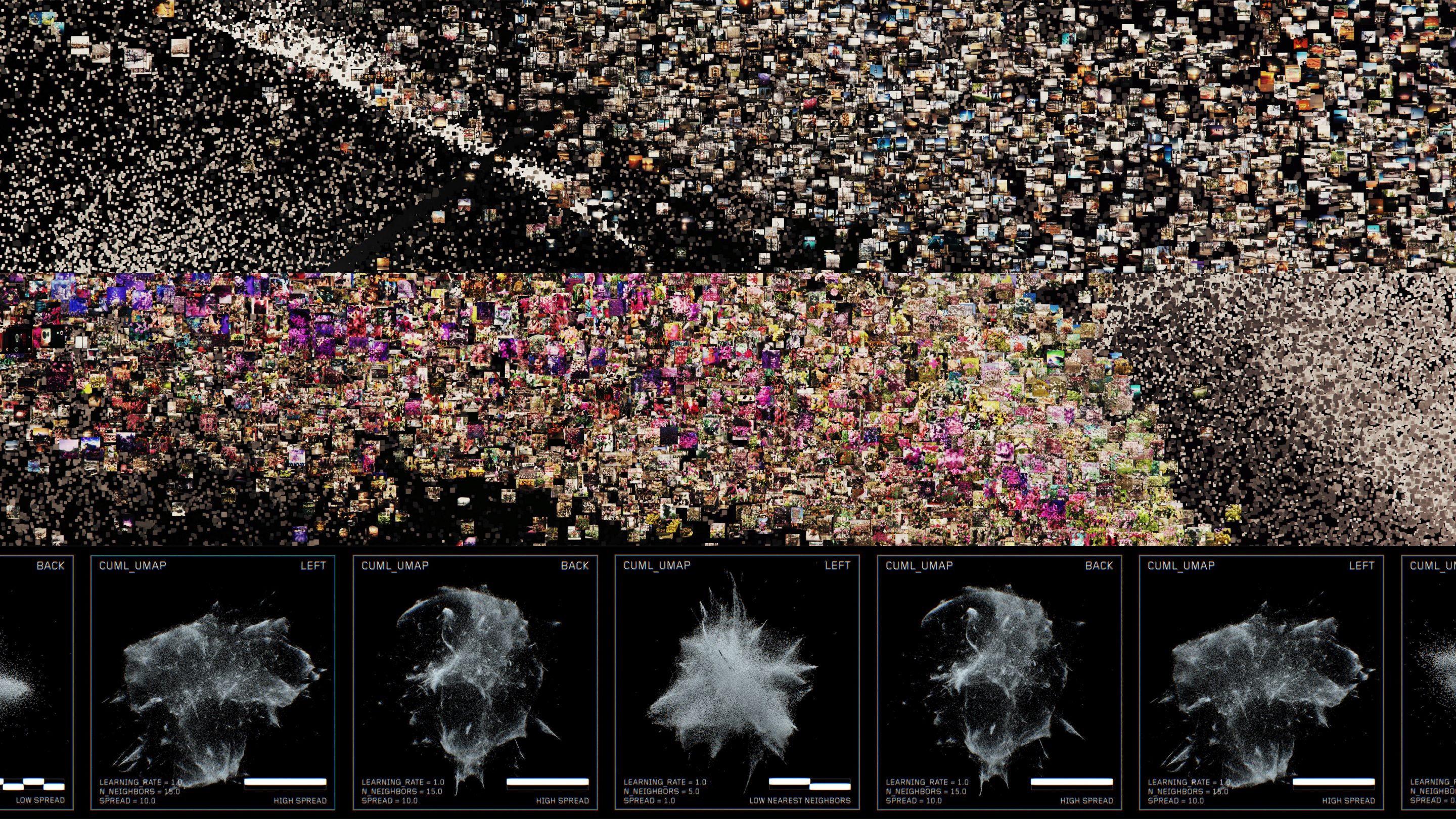For Refik Anadol Studios, a custom image cloud rendering engine was developed to power large-scale, immersive art installations. This engine was specifically designed to handle the rendering of massive image clouds, consisting of millions of images, and to produce high-quality fly-through animations along spline-based camera paths. The system was built to deliver video outputs at an impressive 16K resolution, using a tile-based renderer to achieve this ultra-high definition.This rendering engine was crucial in creating deeply immersive experiences, enabling audiences to navigate through intricate image clouds with seamless fluidity. The high-resolution output ensures that even the smallest details are captured, providing a visually stunning experience that is both expansive and precise.The work produced with this custom engine was exhibited at Fotografiska in Stockholm, Sweden, where it captivated audiences with its scale, detail, and immersive quality. The combination of cutting-edge rendering techniques and innovative visual design made this project a standout example of how technology can be harnessed to create truly transformative art experiences.